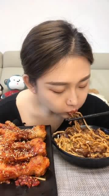 视频里的日韩小姐姐,那可是个颜值担当。她穿着一件简约的T恤,搭配牛仔裤,长发飘飘,笑容甜美。当她拿起筷子,夹起一块炸酱面,那专注的眼神,仿佛在说:“我要好好享受这美食!”镜头拉近,你能看到她精致的五官,还有那双灵动的眼睛,简直让人忍不住想跟着她一起品尝这美味的炸酱面。